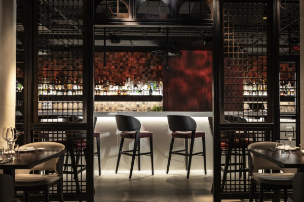 Our design turns the arrival sequence into the defining spatial experience. At street level, the spritz bar draws people in from Valletta’s busy streets and signals the restaurant’s presence. From there, guests move down into a more intimate and carefully lit interior, where the main dining room, lounge bar and private dining room unfold as a connected sequence of spaces. This transition from bright exterior to atmospheric interior helps establish a clear sense of occasion.